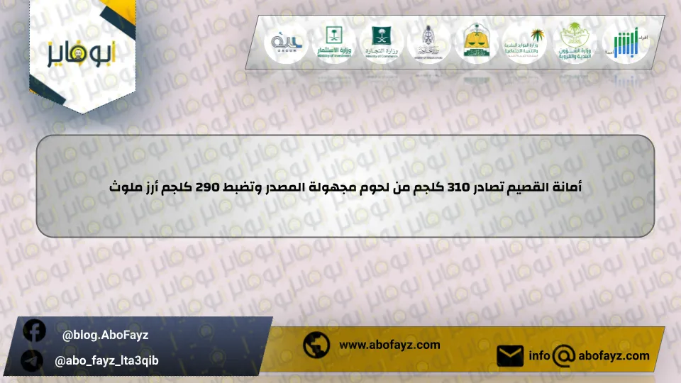 قامت أمانة منطقة القصيم بحملة تفتيشية ناجحة أسفرت عن ضبط كميات كبيرة من اللحوم مجهولة المصدر والأرز الملوث، تم حجز 310 كلجم من اللحوم غير صالحة للاستهلاك البشري و290 كلجم من الأرز المتداول بشكل غير صحي. تمت عملية المصادرة بعد تلقي بلاغ بشأن تجارة غير مشروعة للحوم، وتمت المداهمة بالتعاون مع الجهات الأمنية.