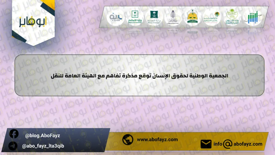 | الجمعية الوطنية لحقوق الإنسان توقع مذكرة تفاهم مع الهيئة العامة للنقل |