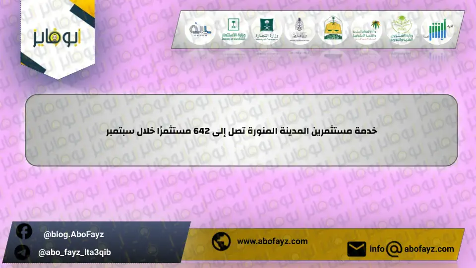 خدمة مستثمرين المدينة المنورة تصل إلى 642 مستثمرًا خلال سبتمبر