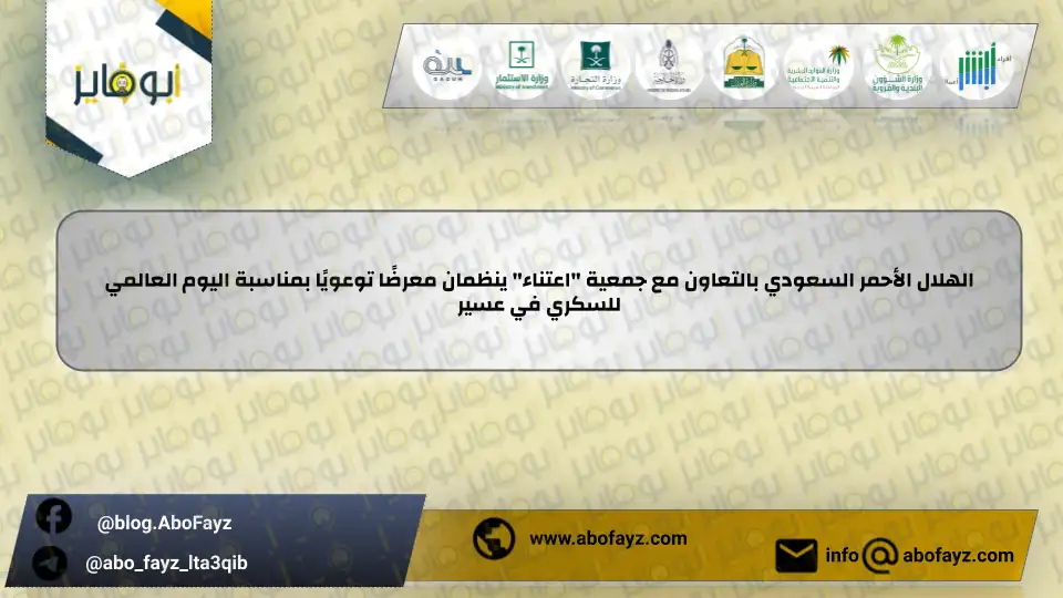 | الهلال الأحمر السعودي بالتعاون مع جمعية "اعتناء" ينظمان معرضًا توعويًا بمناسبة اليوم العالمي للسكري في عسير |